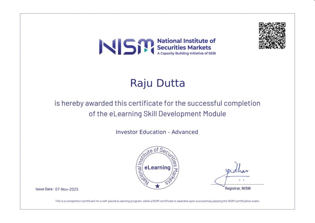 "Meet Mr. Raju Dutta, our NISM Certified Trading Mentor at RD Trading Institution. With over 18 years of hands-on experience in the market, he brings invaluable insights to our students. Mr. Dutta's thorough knowledge of the securities market, backed by his NISM certification, ensures top-notch guidance for navigating the financial world." ( Raju Dutta, founder of rd trading institution)